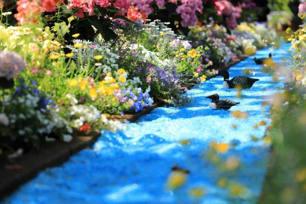 川に見える部分も小さなブルーの花なのかな?それともカラーストーンかガラス玉?