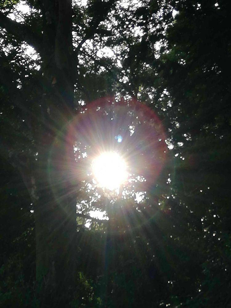 暑いながら軽く日陰を探して散歩🌳🌳🌳木々の隙間から太陽☀️をチラリと、その周りの光が綺麗でした😃✨✨