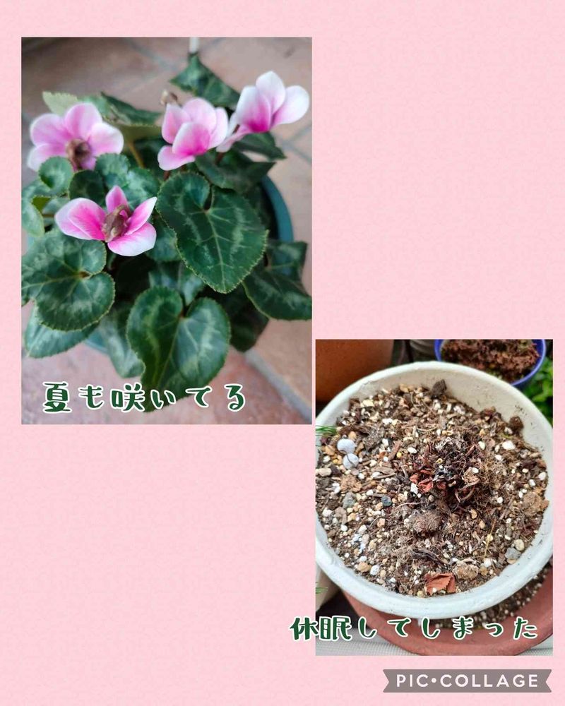 2種類のシクラメン、非休眠法のつもりだったけど、下のシクラメンは、休眠した…今のとこ球根固い。