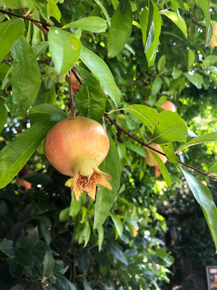 オーダー家具屋さんの緑いっぱいの庭に た〜くさんの柘榴の実