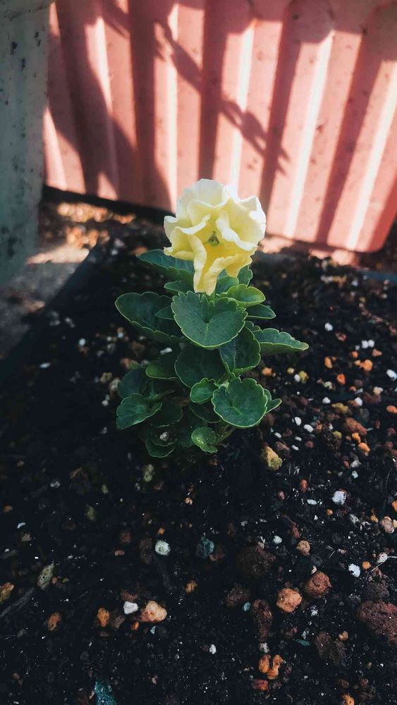 我が家も1コだけ、プランターのビオラがまだ存命してモノクロみたいな色で咲いてます😂