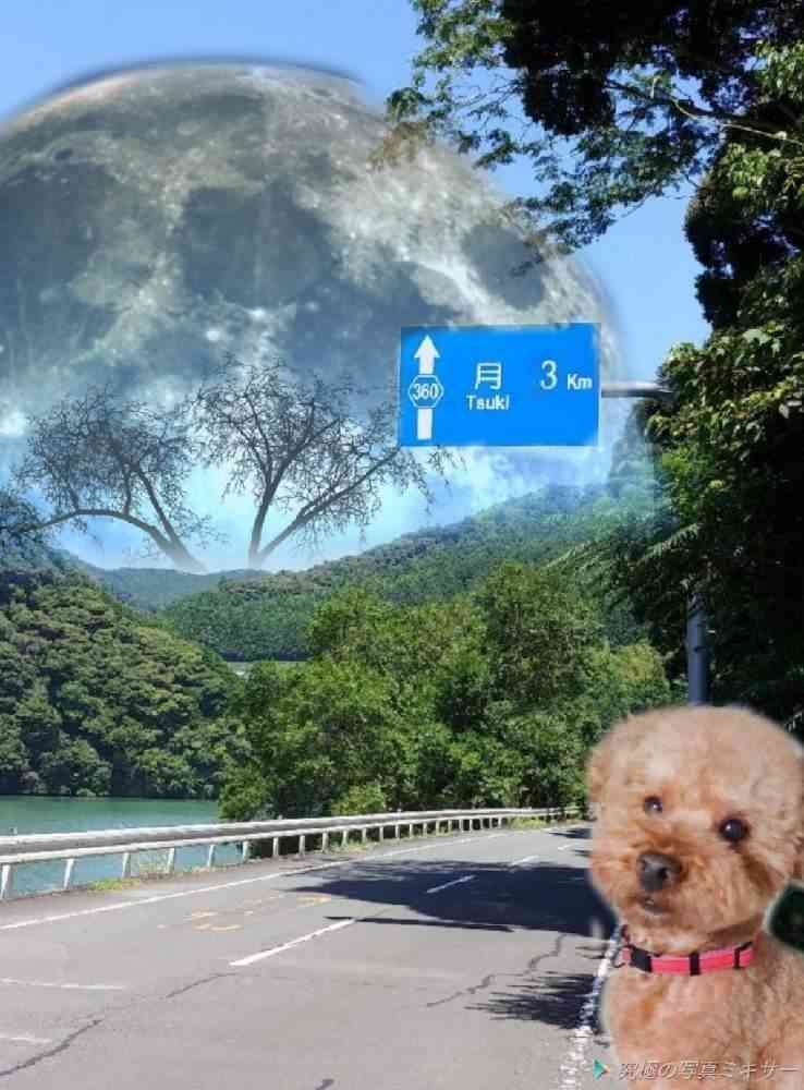 8/5 投稿の「月まで3km」の標識(ほんとにある地