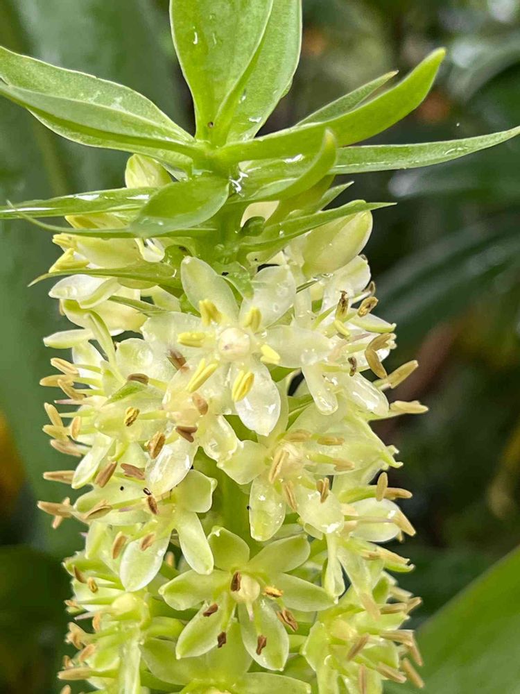 パイナップルリリーのど真ん中あたりの花びらが6枚がお口に見えますね(*´艸)(艸`*)ネー満開です