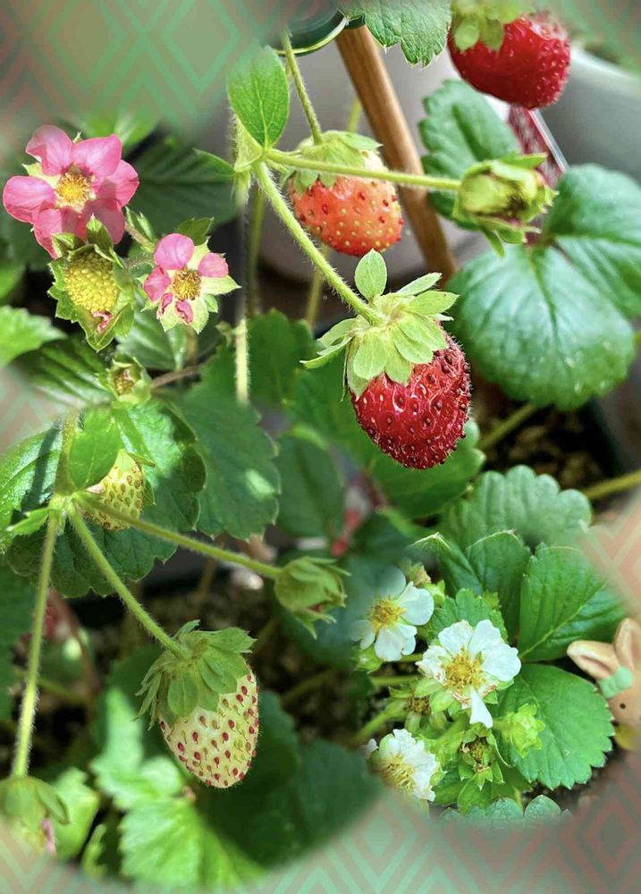 四季なり苺🍓はお花メイン、実はオマケ😆でも、一応甘酸っぱいです❤︎.*