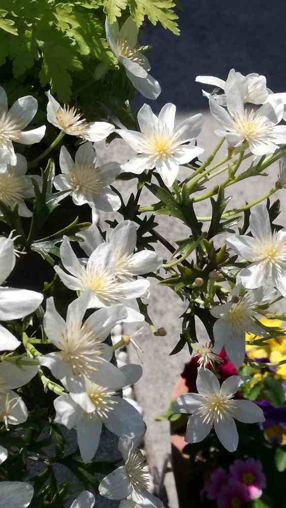 あるお宅の門扉の上の小さな鉢に植わっていました。葉はアイビーぐらいの大きさなのですが、細く切れ込みがあり、クレマチスに似た白い花を咲かせていました。どうしても名前を知りたくて❗