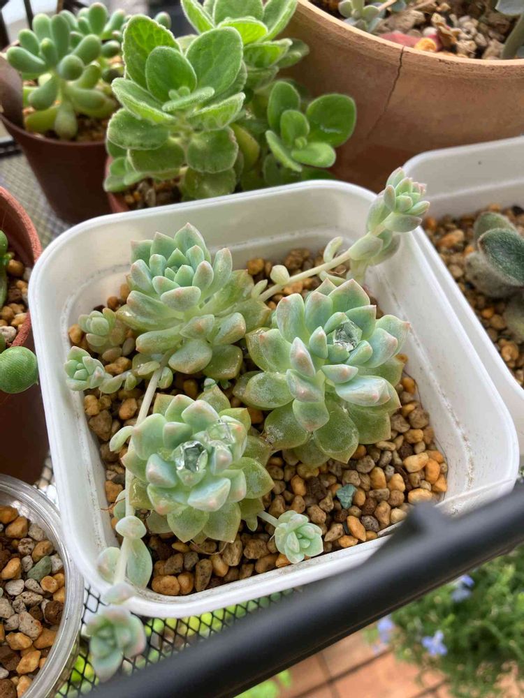 狭いベランダですが、多肉や草木を植えて楽しんでいます。お世話をしていると癒される〜