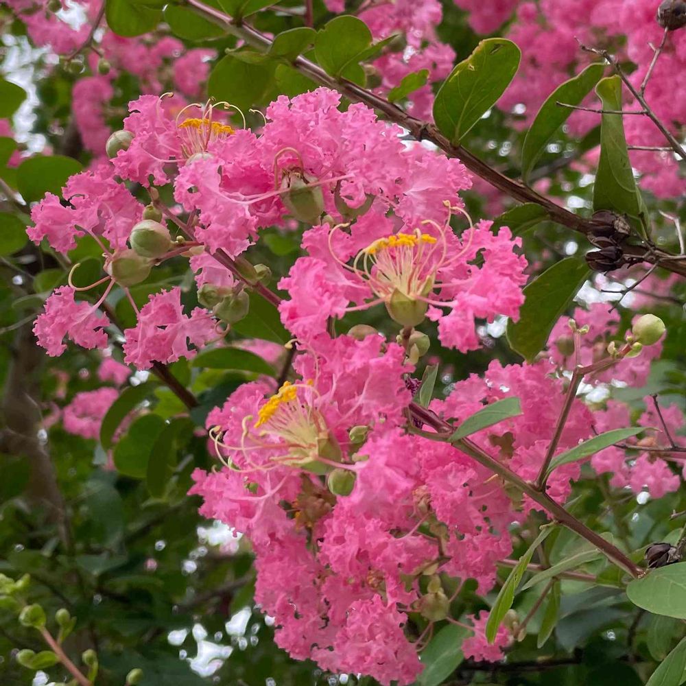 サルスベリの花は街路樹で高いところにあるのを見上げるのがほとんどで、ピンクと白のサルスベリと青い空が清々しい気持ちになります☺️