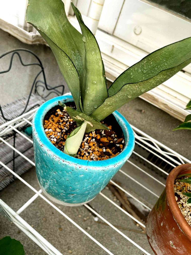サンスベリアに次男誕生。きみ子株どんどん出すじゃん。5月に植え替えたばっかりだし、しばらく親子いっしょに暮らしてもらいましょうかね。自立した長兄もげんきです。ありがたい。