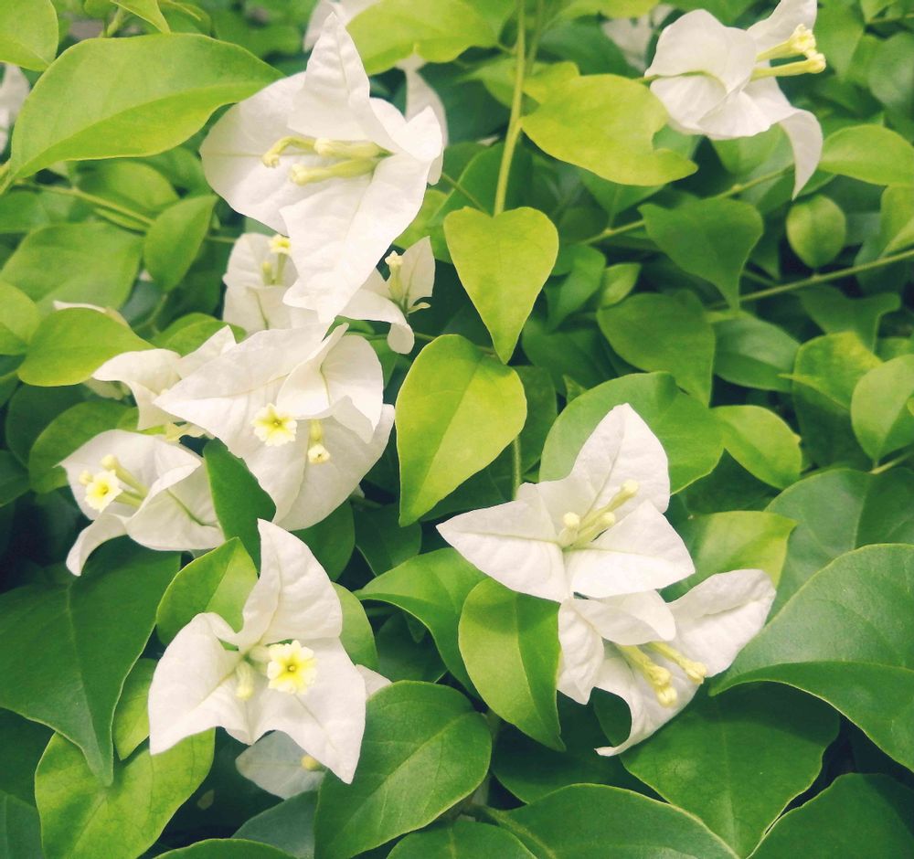 夏を明るく彩る、ピンクのブーゲンビリアも好きですが、真っ白いブーゲンビリアビリアも朝から気分爽快にしてくれて、好きです🤍🕊✨🍀