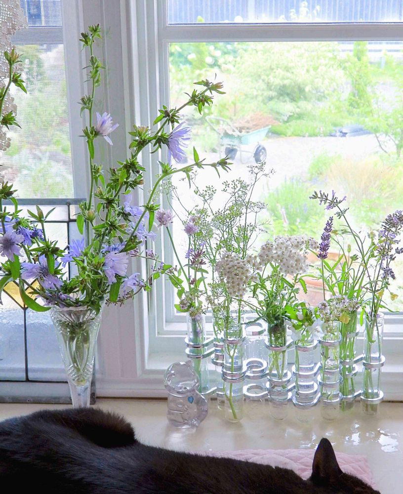 試験管ベースは、ハーブや雑草などの素朴な花でも可愛くおしゃれに飾れますね♪