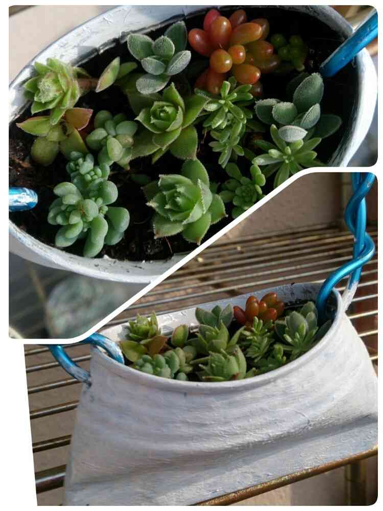 ミニ多肉寄せ植えの、上から横からパシャリ