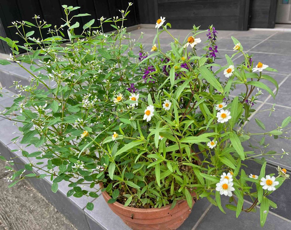 この寄せ植えで一番大きかった紫のアンゲロニアが埋もれそう(´⊙ω⊙`)