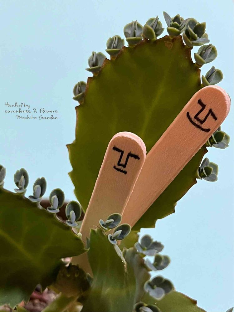 アイス棒のモアイさん、ナイスアイデアですねー😲💖😍🗿子宝草(子宝弁慶草)の学名はKalanchoe daigremontianaなので、普通はカランコエですよねー、クローンのように増えるからというのに引っ掛けて、クローンコエっていうのかも~~😁