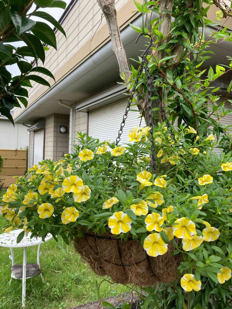 ありがとう😊ハンギングを作りたいけどうちは物干し台以外吊す所がないんですよ〜💦それで考えて枯れてしまった木に吊るしてます😊