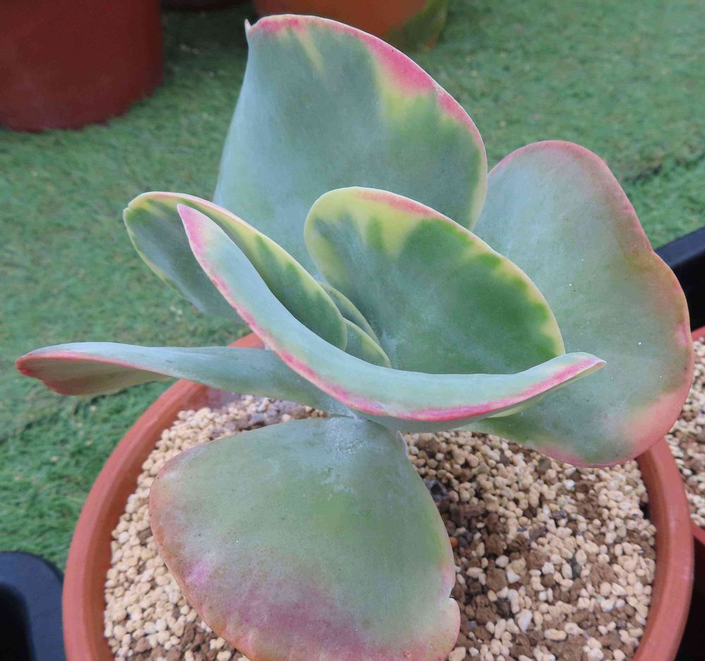 緑の部分の模様もいろいろで面白いけど,育て方が悪いのかどうしても葉が曲がってしまう。