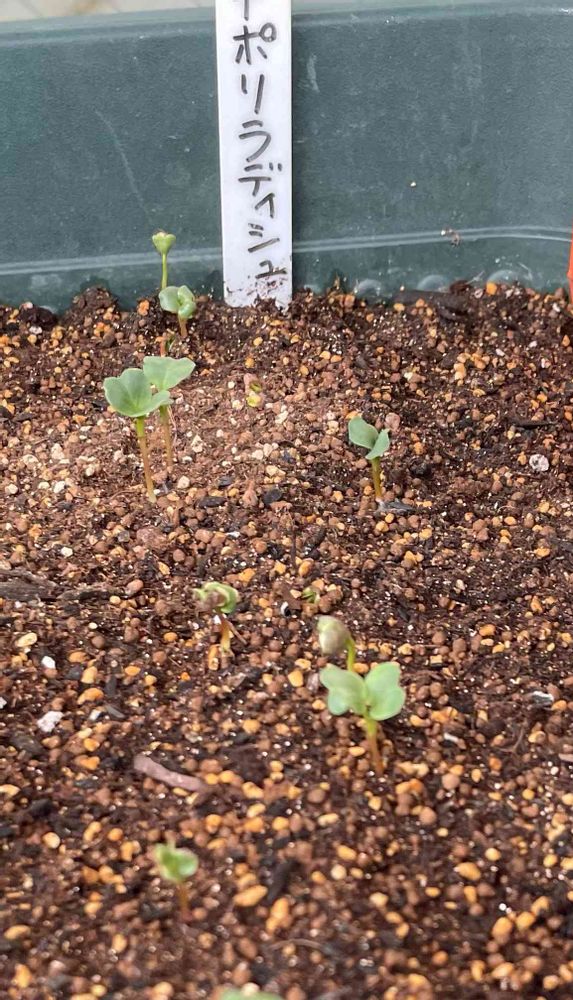 ナポリラディッシュの芽が出て来ました。大きなプランターの土を底石残して総入れ替えして種蒔きしました。