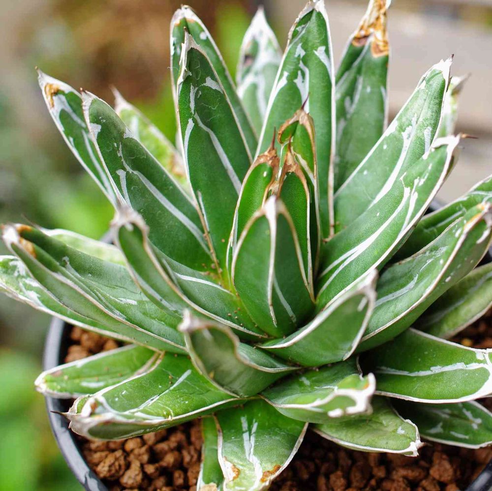 白いラインで着飾られ、緻密で正確な球を描く、控えめながら気品漂う姿から、英国王室ビクトリア女王の名を与えられた名誉あるアガベで、「世界で最も美しい植物」との呼び声もあります。