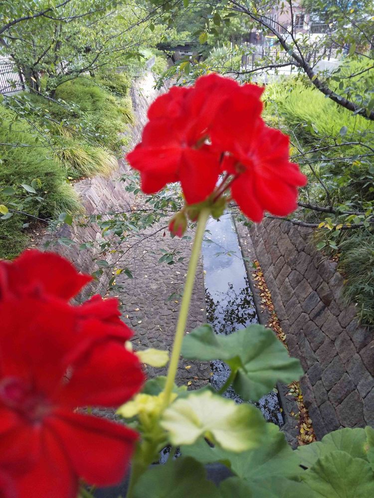 真っ赤なゼラニウムの花で…🌺❤️🥀❤️💚🌿