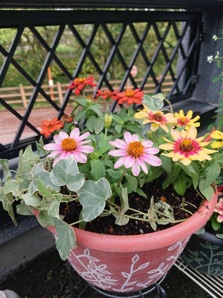 いろんな色の出方のジニアを前にどの子にしようか~🤔ってずいぶん悩んで決めました🎵