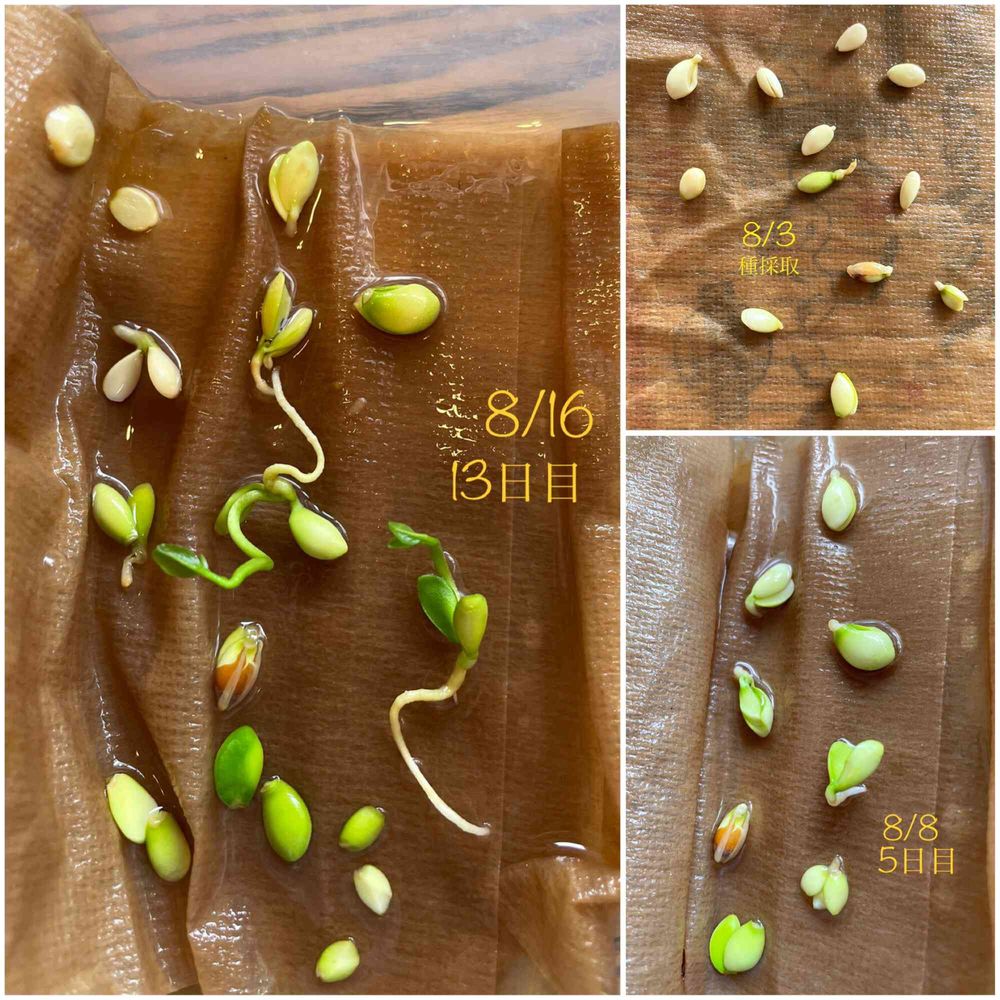 濡らしたキッチンペーパーに包んでジップロックに放置、13日目の今朝のぞいたら🤩すごいことに。