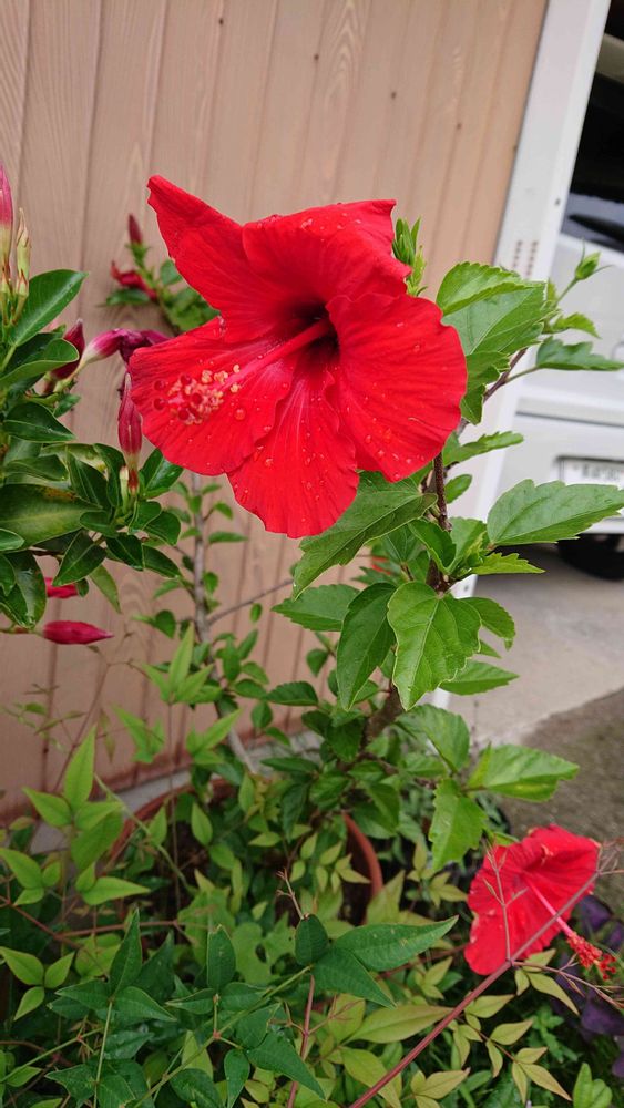 真っ赤なハイビスカス🌺素晴らしいですね。元気になります。