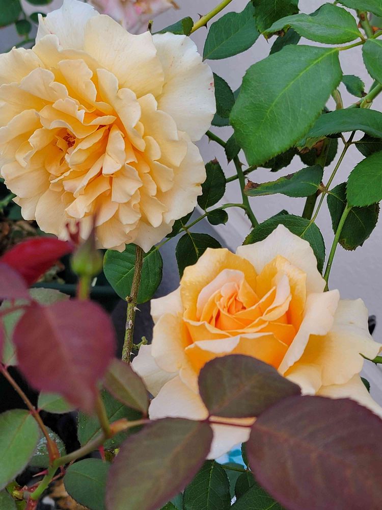 完全に開いた薔薇さんとこれから開こうとする薔薇さんのツーショット美しい。