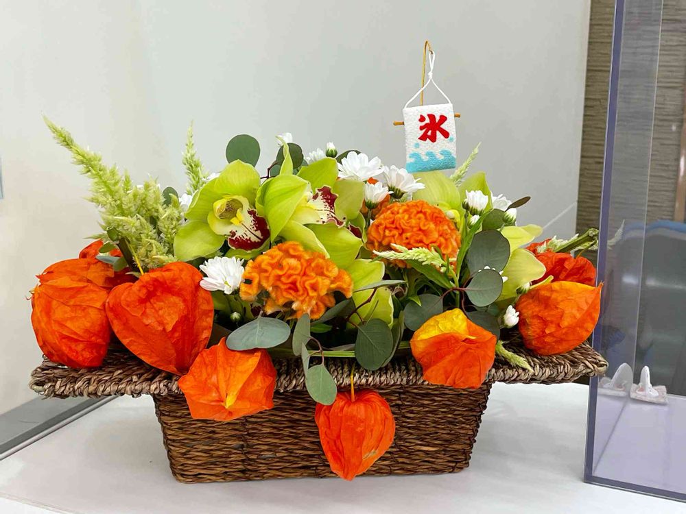 受け付けのお嬢さん達に、お盆だから鬼灯を使ってるんだと思うよって伝えたら、