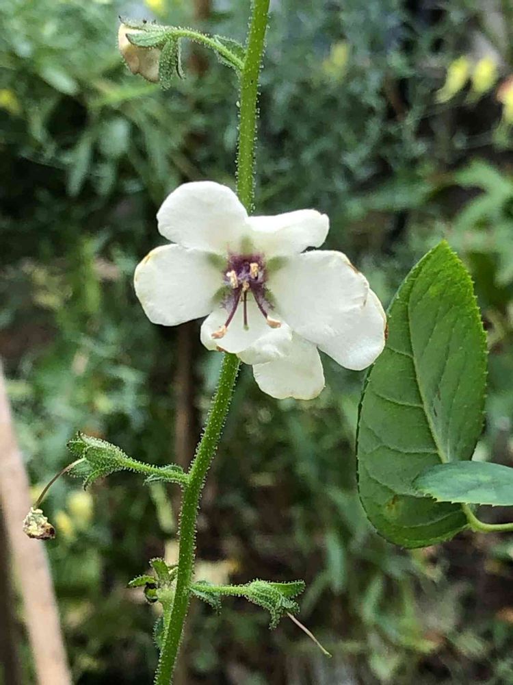 種まきした黄色いバーバスカムが開花まで2年かかったので、開花を気にしていなかった白色のバーバスカム。あれ?こちらは小さい株のまま1年目に咲いちゃった😅