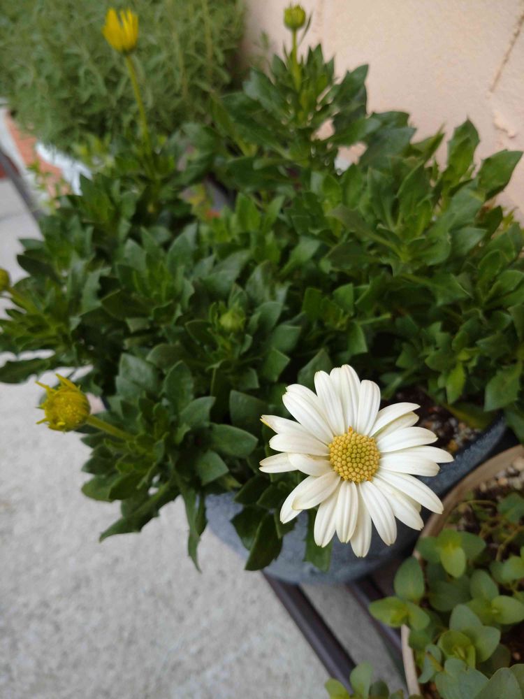 サントリーフラワーズさんの オステオスペルマム「kirara ホワイト」のお花が咲き始めました😊💖 蕾もたくさん付けてくれています!