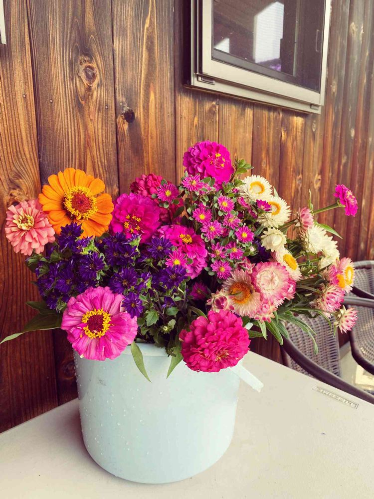 長靴おばさんさんのジニア(百日草),カイガラソウ,マイクロアスターの投稿画像
