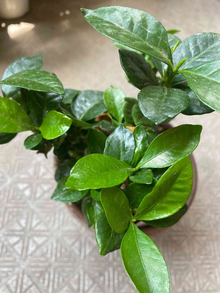 花は買ってきた時だけしか咲きませんでしたけど、常緑とのことなので、観葉植物として楽しみます