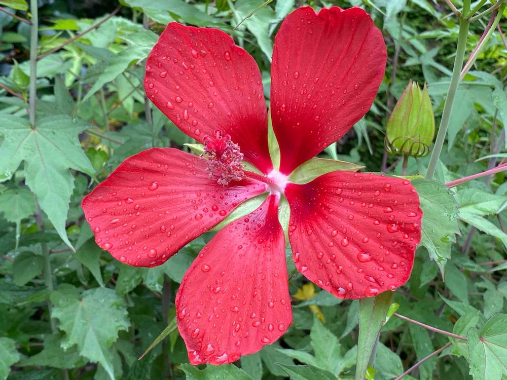 小さな庭,モミジアオイ,雨粒の投稿画像