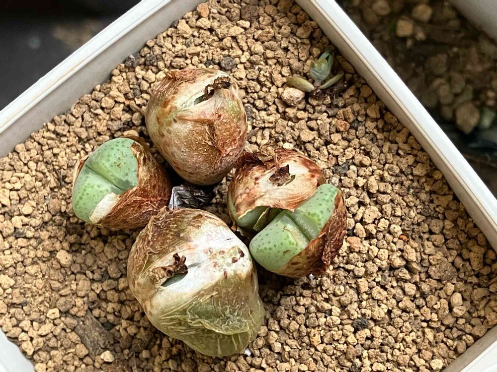 コノフィツムがシワシワになってしまったので、雨にあたって根腐れしてしまったのかな、と落ち込んでいたら、脱皮でした😳この時期に脱皮しないイメージだったので驚きました😅