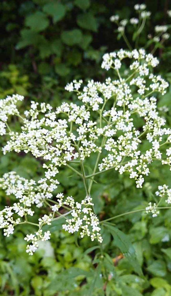 スイカズラ科オミナエシ属の多年草。野山の草地や道端の半日陰に生える。地上に長い走出枝を伸ばし、先端にロゼット状の子苗を作って殖える。葉は対生し、多くは羽状に分裂し、裂片は卵状長楕円形で頂裂片が最も大きい。茎の下部には白い粗毛が多い。花期は8~10月。花茎は直立し、白い花を散房状に多数つける。花は直径4㎜ほどで、5枚の花弁がある。花が終わると長さ約3㎜の倒卵形の果実がなる。果実になると小苞がうちわのような翼になり風に乗って散らばる。