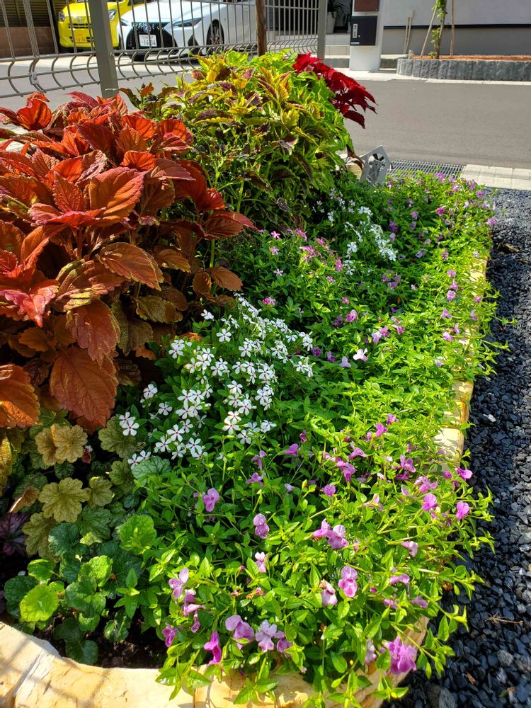DIYで作った花壇にコリウス、フェアリースター、スーパートレニア、ヒューケラで夏の花壇完成しました!🤗