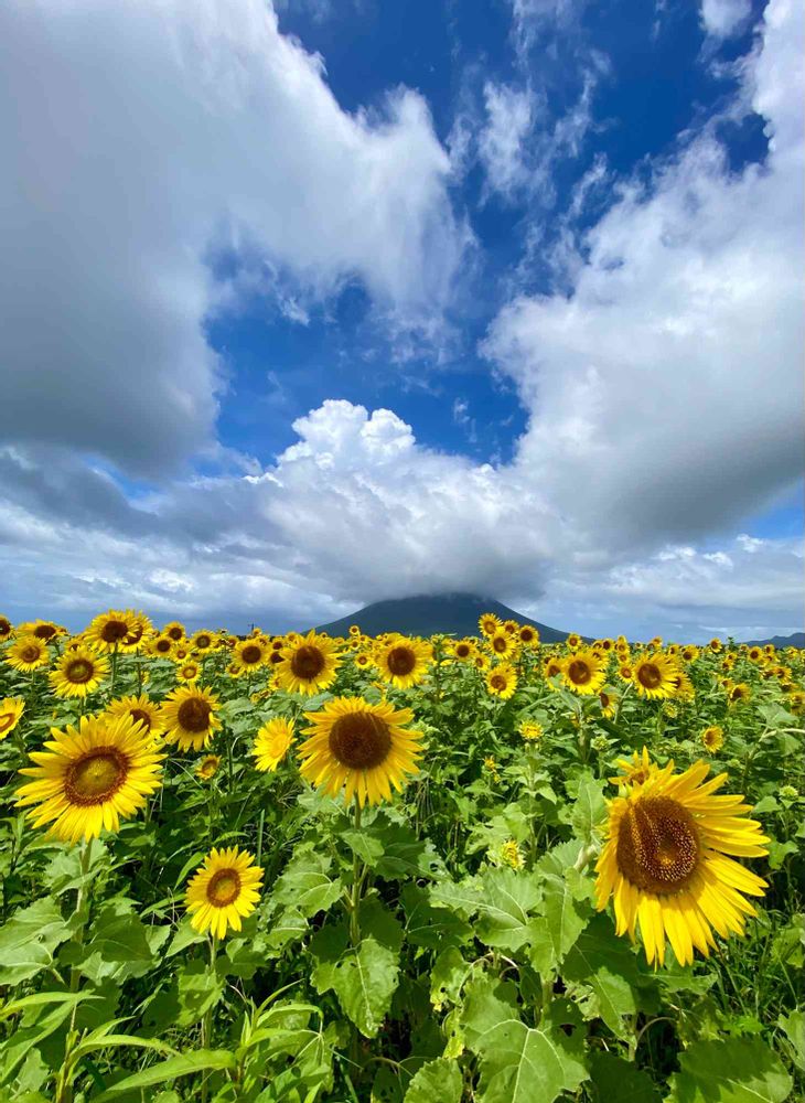 花と虫と風と空とさんのひまわり畑,開聞岳の投稿画像