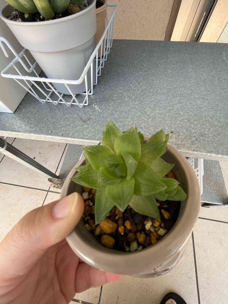 友人がお庭で育てて増えたのをスポンと抜いてホイッとくれたハオルチア🌱