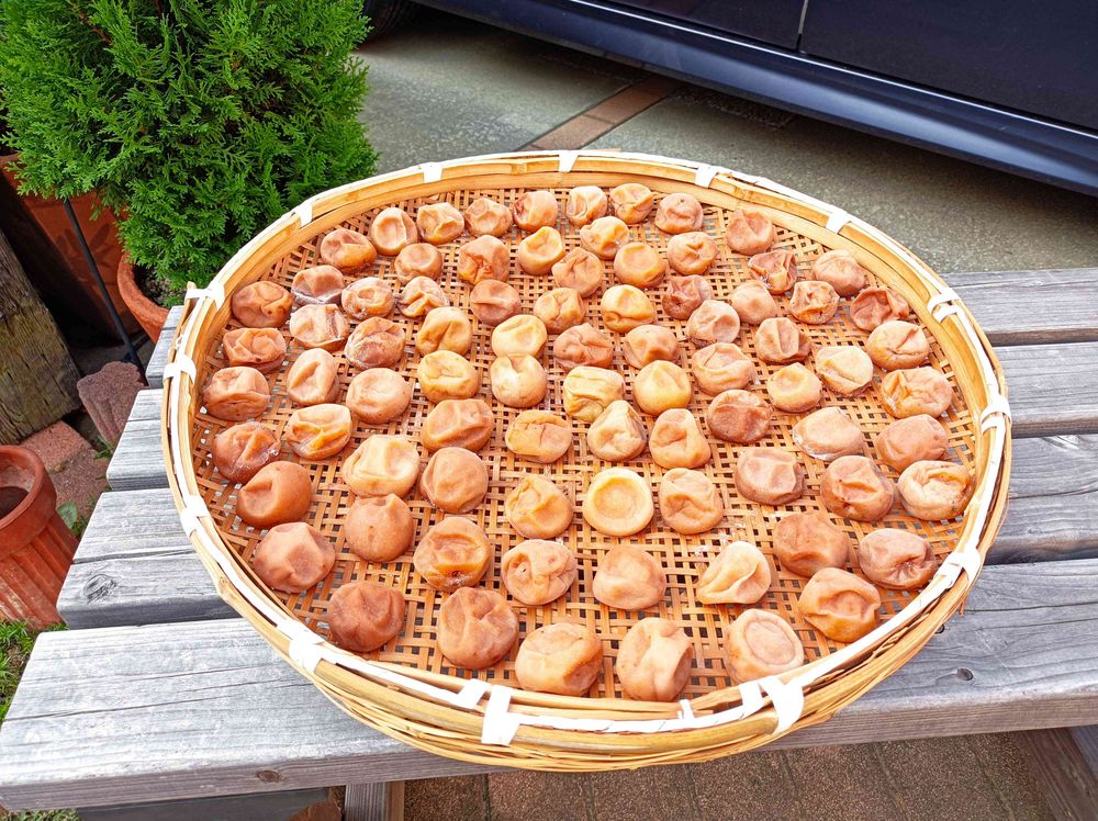去年のもまだ余ってるので今年はちょっと量少なめに80粒程度……、私のお昼の🍙や焼酎の中に入れたりして楽しみます🎶