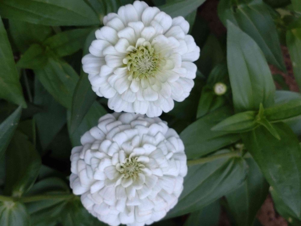 真っ白なジニアが寄り添って咲いていました