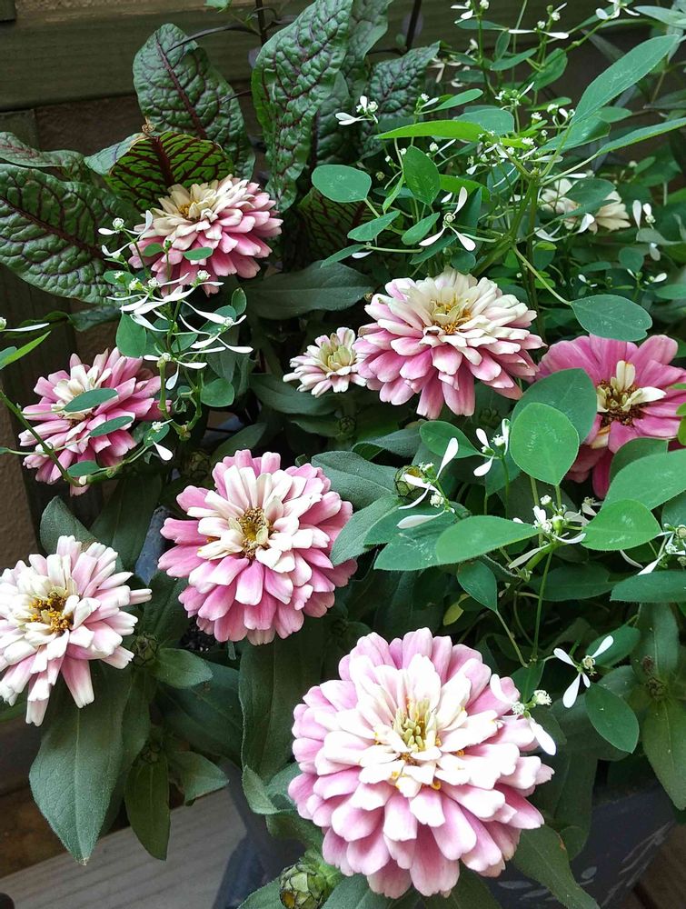 これは八重咲きで、和モダンな感じが気に入って寄せ植えにしてみました🎶