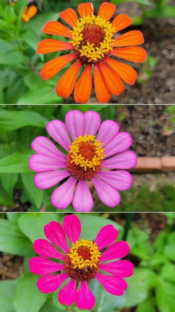 今日のお花、呼び名が2つあるヒャクニチソウ、ジニア…夏の元気花ですね💪💕