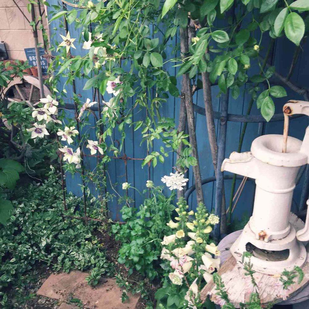 先日、白い井戸ポンプを置いたこの場所♡ 今年はバラの開花がいつもより早そうですが、足元が追いついて来ないので クレマチスやオルレヤ、ジギタリスを植え込みました☺️これで 上部の白バラが満開になれば 一気に華やかになるのになぁ〜...꒰ღ˘‿˘ற꒱