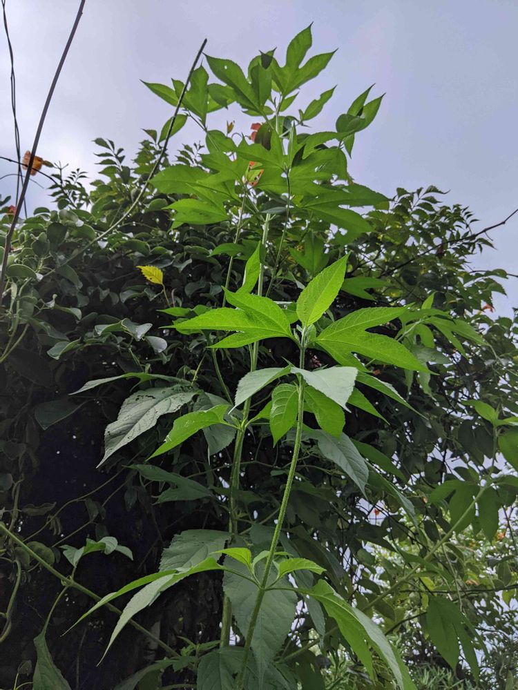 トトロアオイです。花は咲かずに、伸びるだけ!😱どこまで伸びるの?ジャクと豆の木みたいです。🙄🌞🤔😱🌱🌿😅