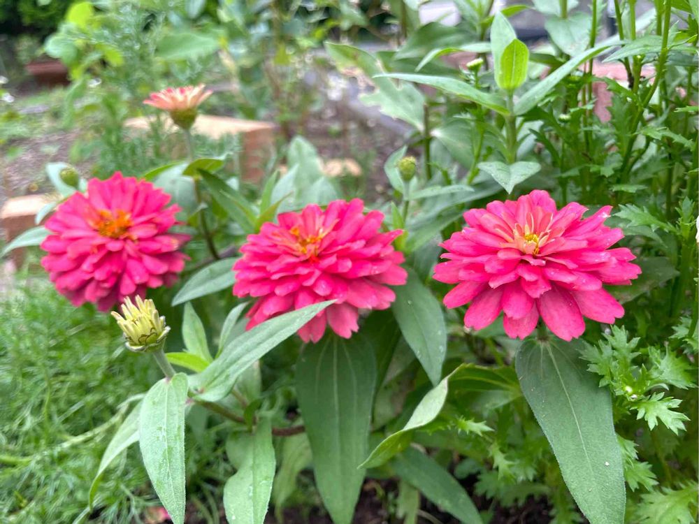 今日のお花「ヒャクニチソウ」3姉妹みたい☺️