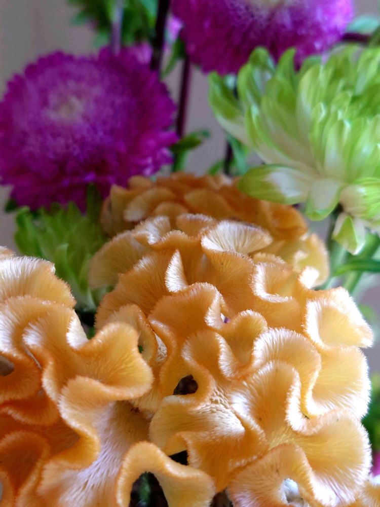 アスター、マムの色合いをケイトウがまとめているわね💕