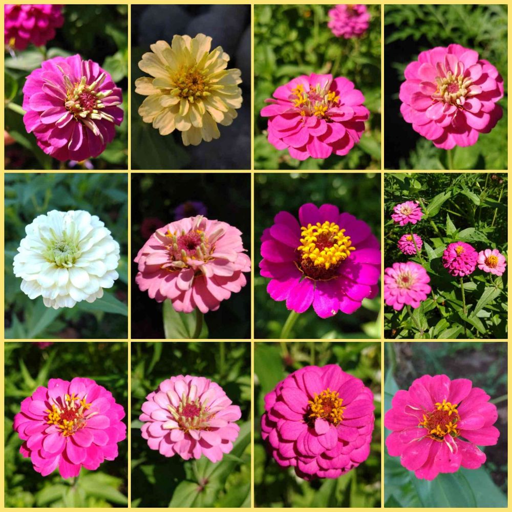 昨年育てた百日草から、お気に入りの種を収集して育てたので、色や形が何となくどれも似ていますね😅
