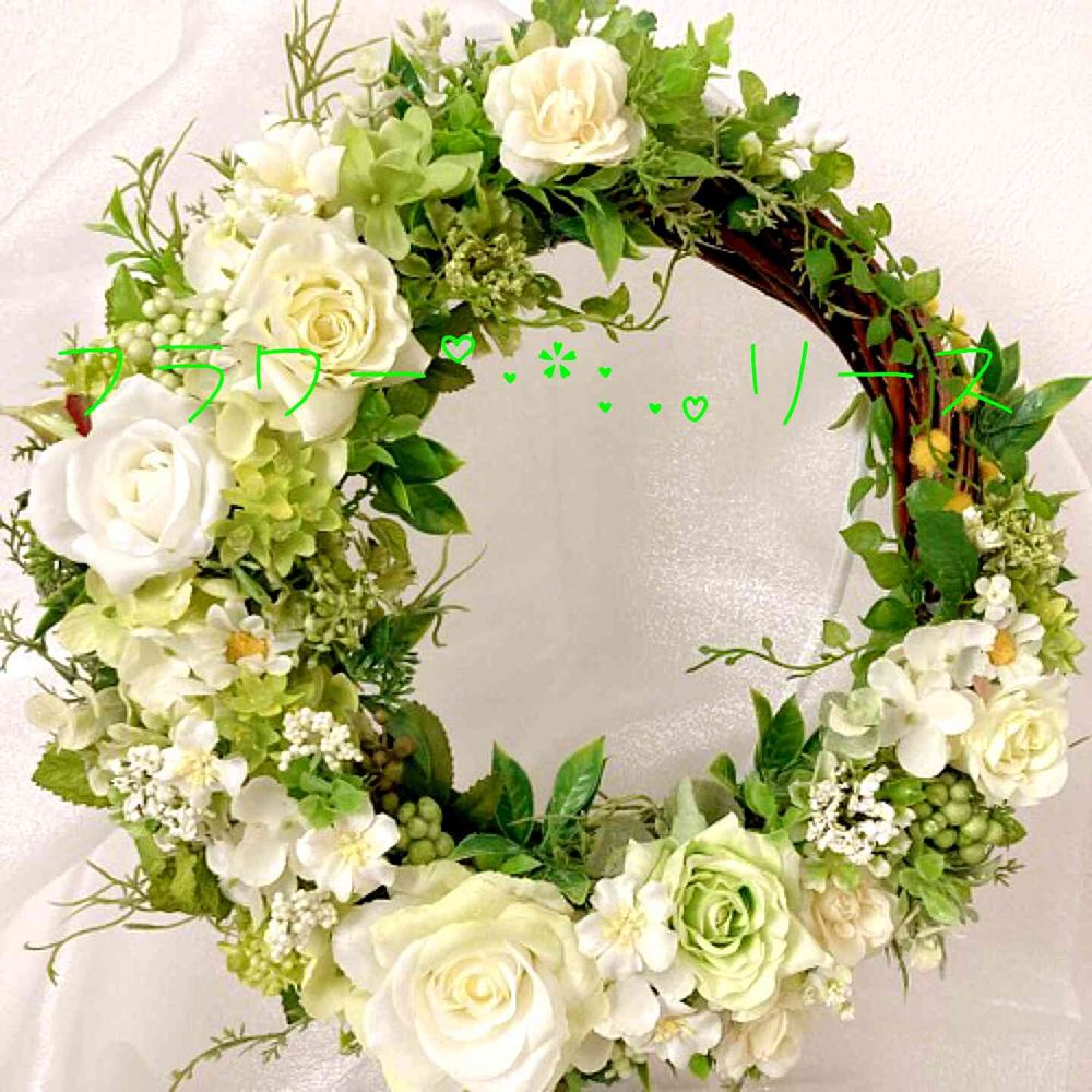 白🤍とグリーン💚て統一され 涼しげで上品なリース🍀