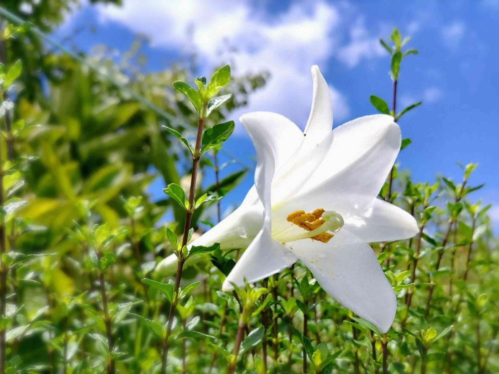 雨上がり、雨粒をまとったユリの花🌦️