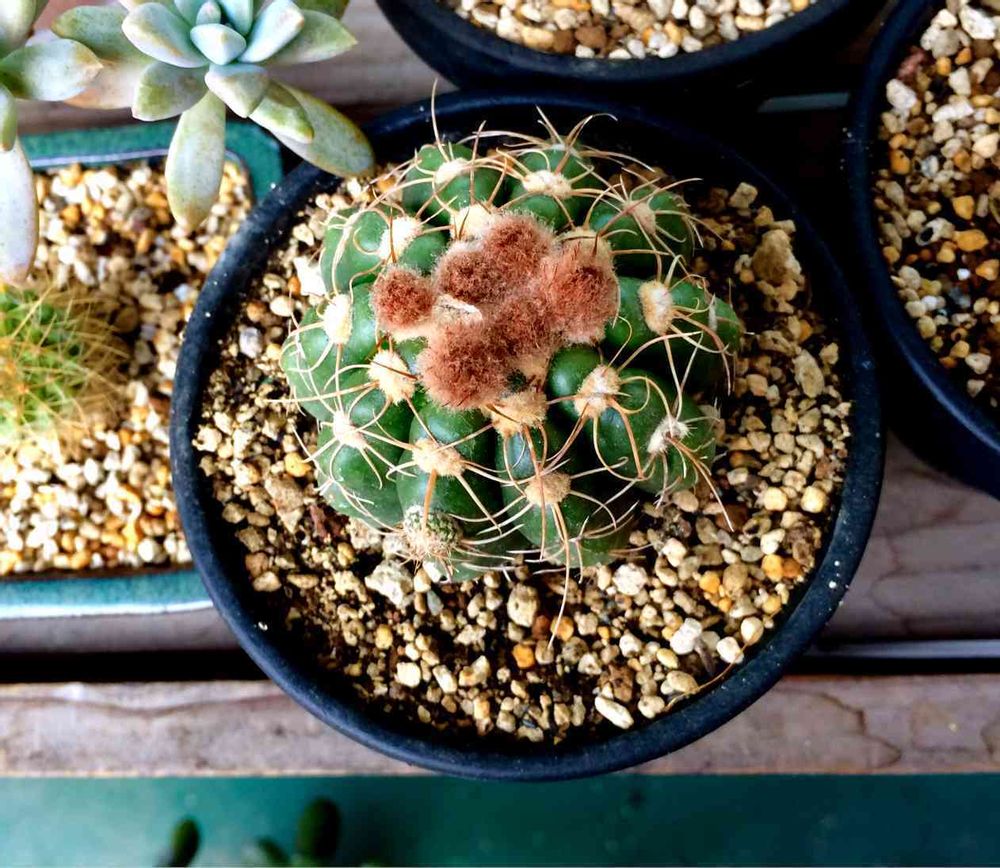 家に来て以来しばらく経つのに全く動きが無かったスミレ丸君の頭にモフモフが〜😀 何色の花が咲くのか楽しみ。