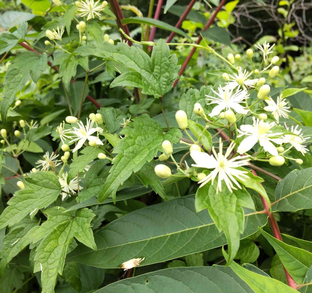 蔓性の白い花、センニンソウ?かと思ったが🌿がちがうようです。